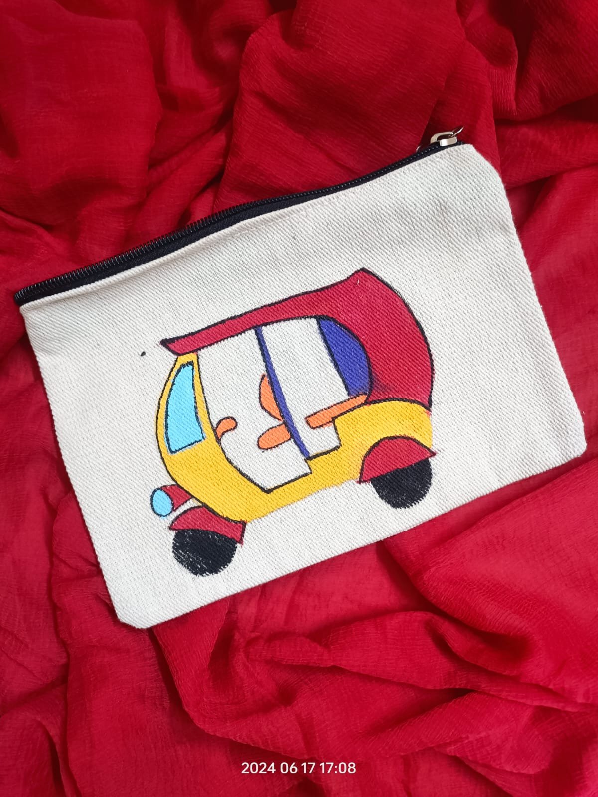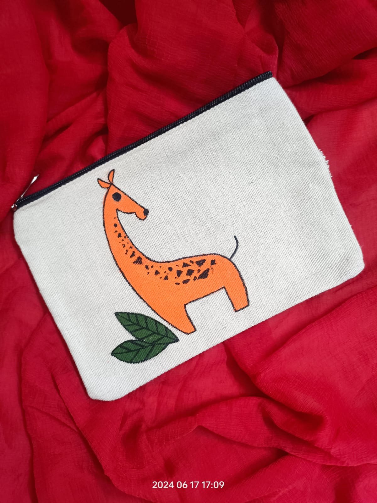 The design has been hand-painted on heavy natural canvas with fabric colors.