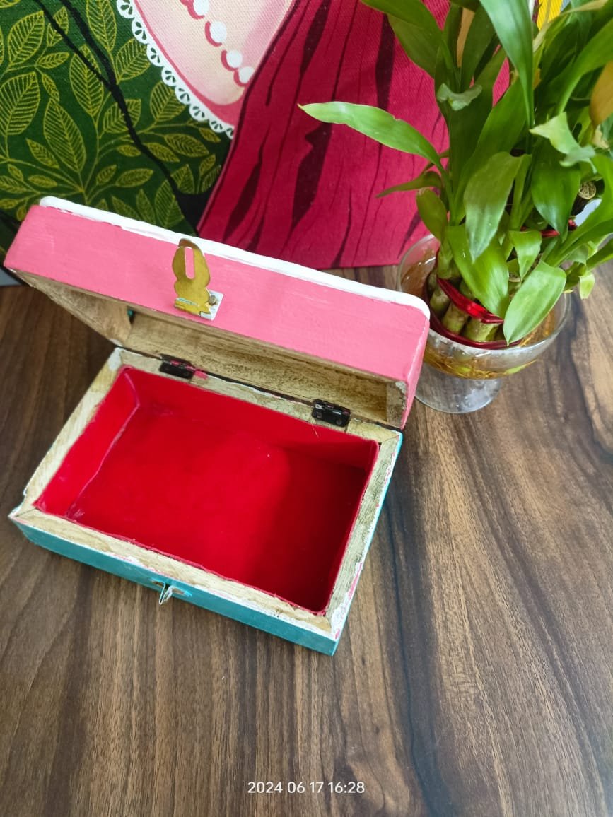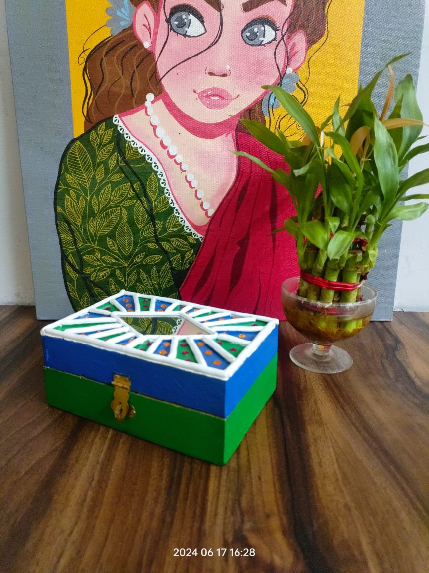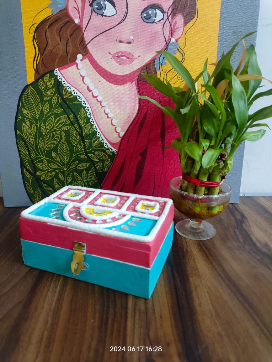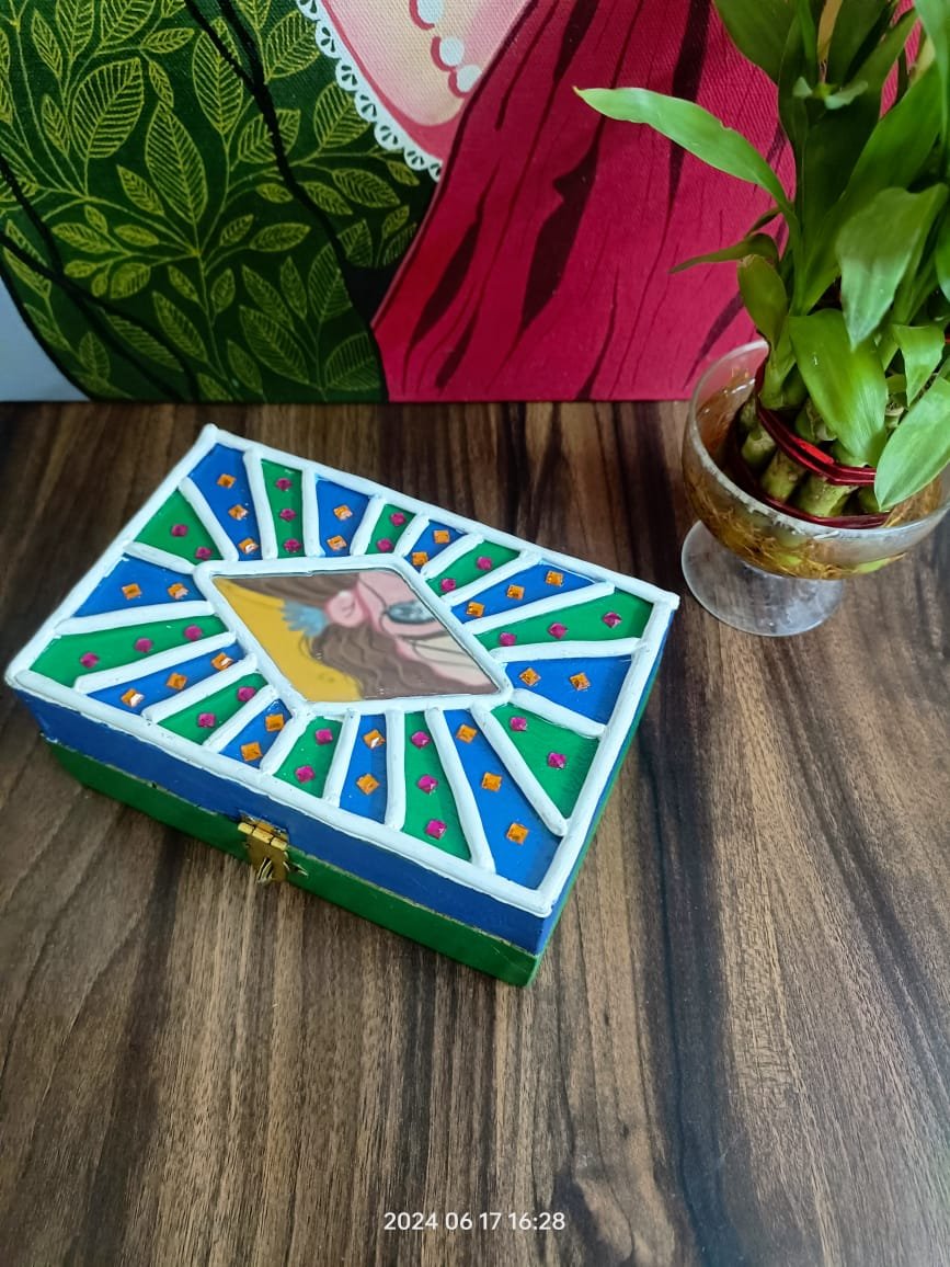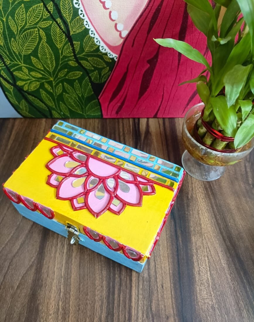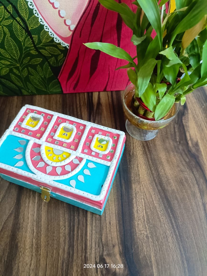 Handmade Rectangle Personalized Lippan Wooden Jewellery Box | Multipurpose